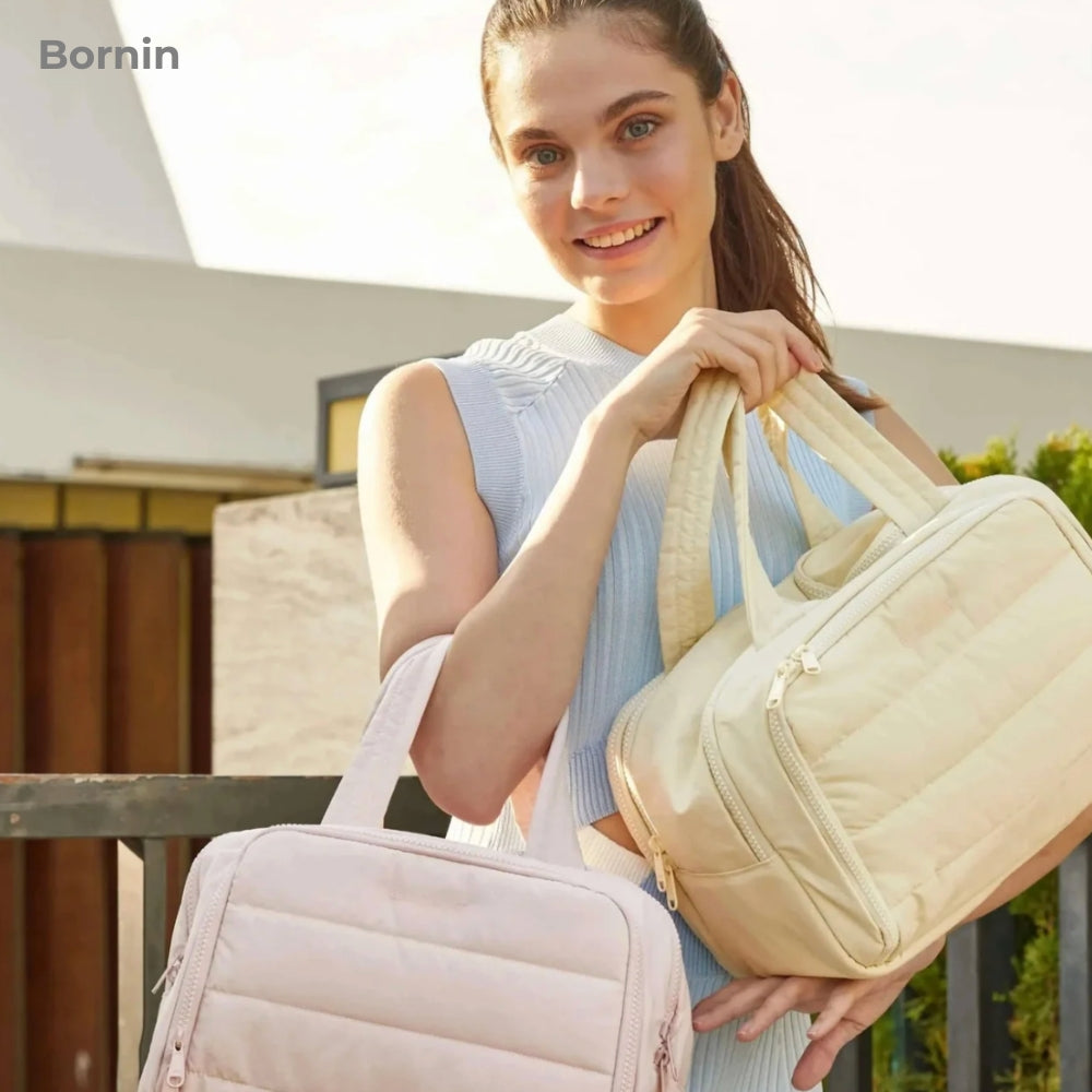 Este organizador cuenta con un interior amplio y compartimentos inteligentes que pueden acomodar desde cremas y cosméticos hasta artículos de tocador. Podrás llevar todo lo esencial sin preocuparte por el espacio.